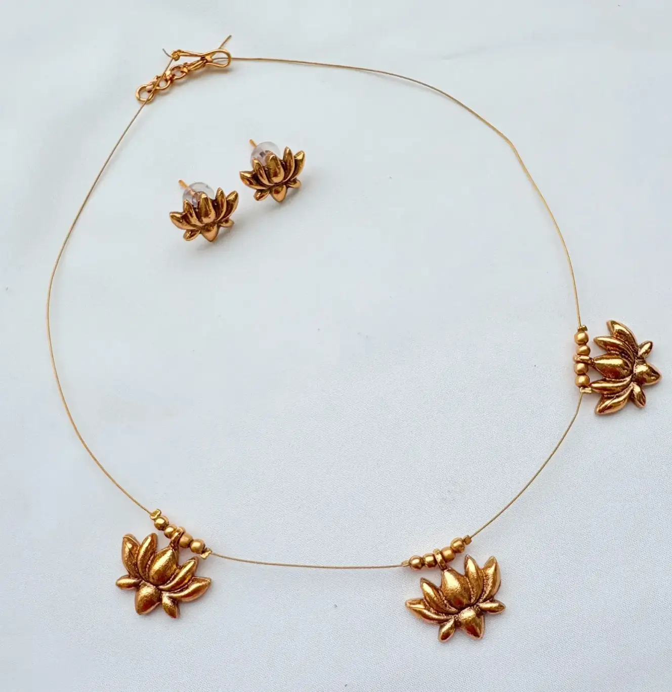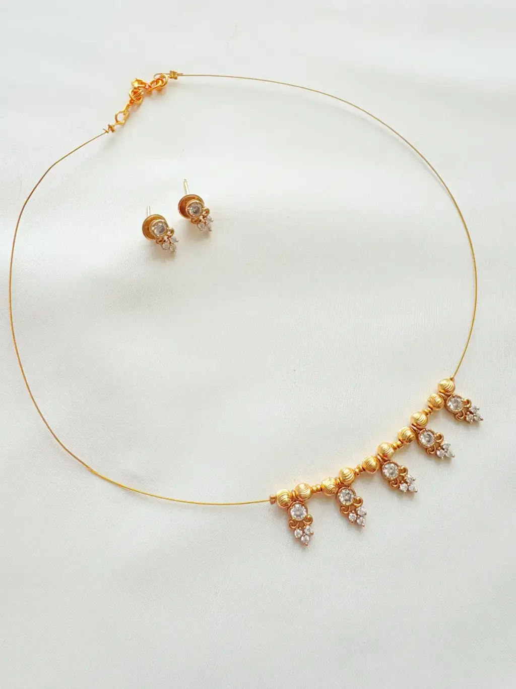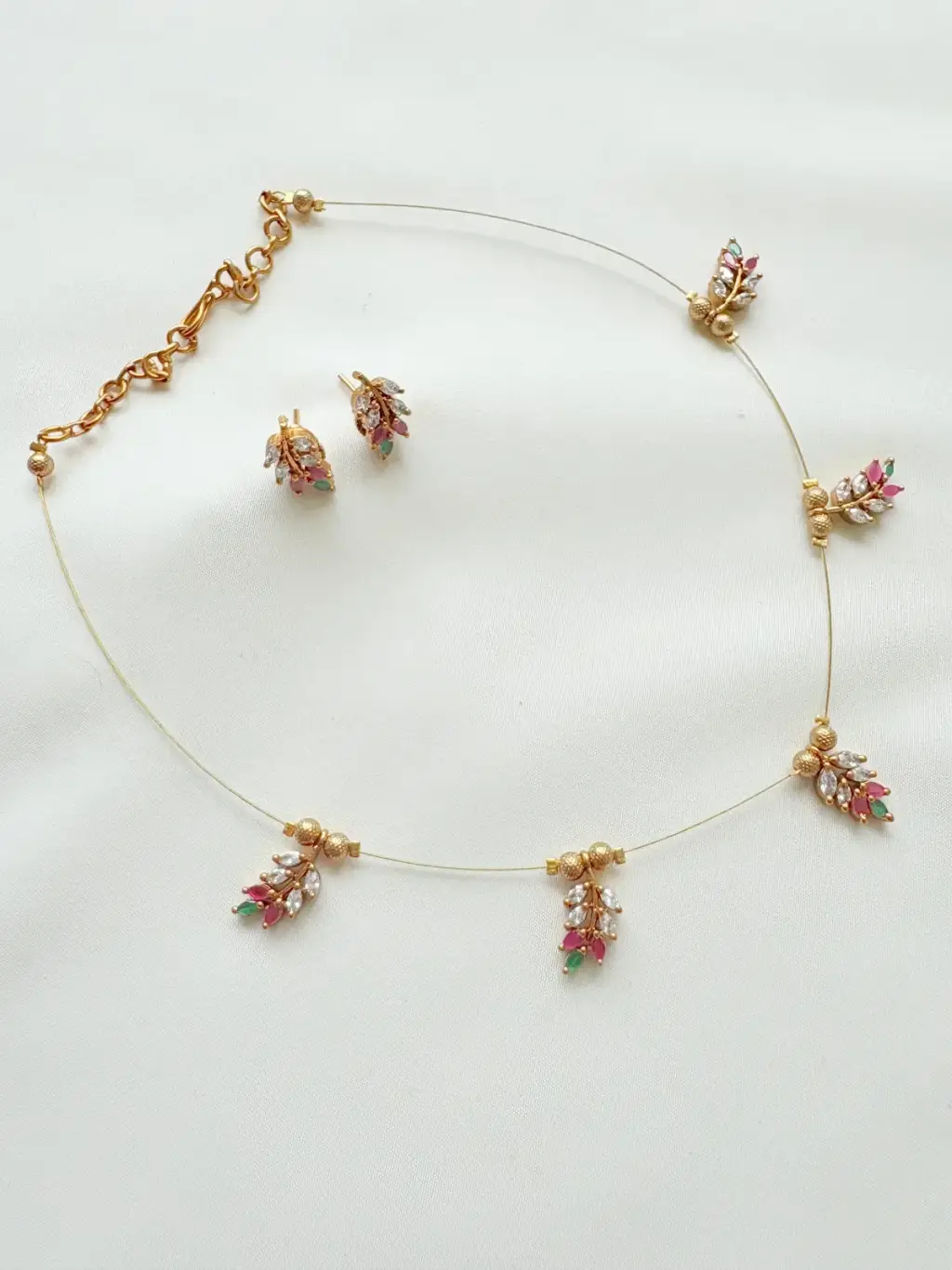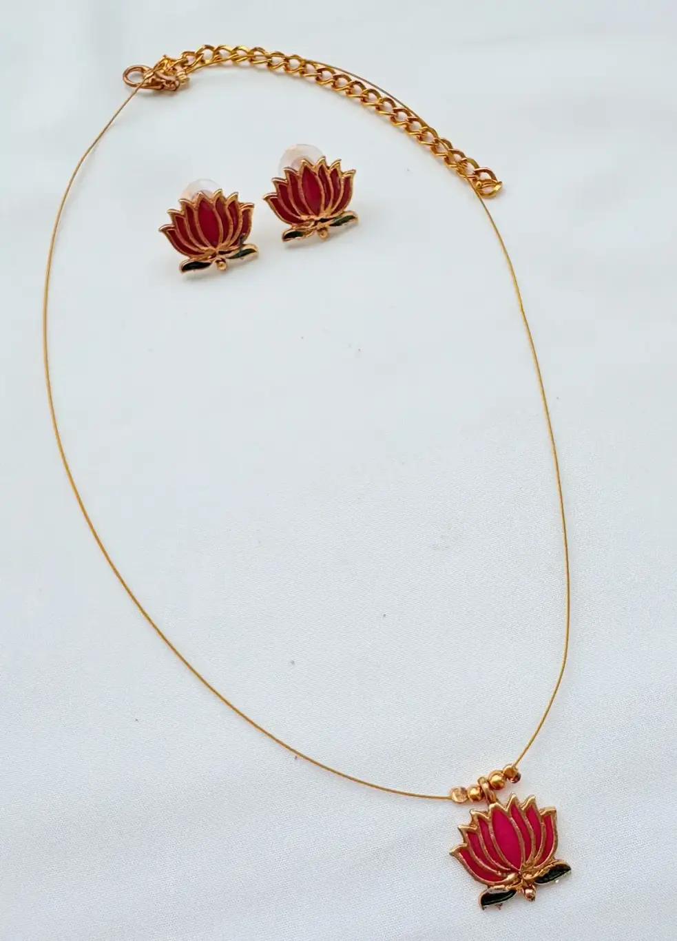 This graceful neckset features a symmetrical design with red stones and pearl accents, finished in rich matte gold. Paired with matching earrings, it’s perfect for festive and bridal occasions.
